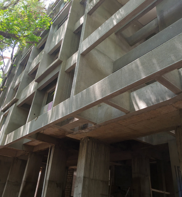RCC-framed structure designed as per earthquake resistance norms, using highest quality material